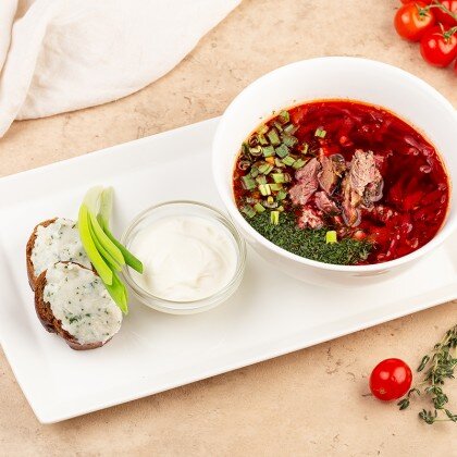 Борщ с копчёной грудинкой и панским салом